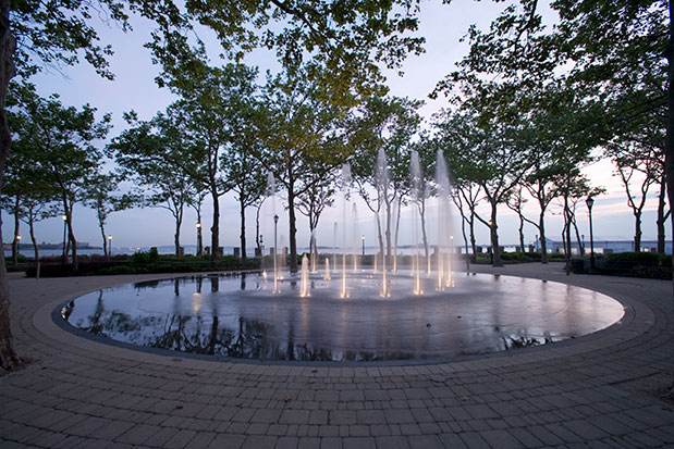 The team replaced the paving with 34,000 perennials and 70,000 bulbs, adding curving benches and paths, food kiosks, and a spiral fountain. Ten years after the Bosque’s completion in 2005, the Seaglass Carousel opened across the path from it, illuminating a once-dim corner of the park with a nautilus shell–shaped carousel that WXY designed, inspired by the historic New York Aquarium that once occupied the Battery. Children ride on large, iridescent fish that glow with color-changing LED lights. Other elements of the Battery’s renovation include the creation of the Battery Oval Lawn and the Battery Bikeway, both completed in 2016, and the Battery Woodland, opened in 2017.